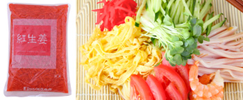 早掘り生姜を使用。業界初!「色落ちしない」紅生姜です。練物や添物にお使いください。