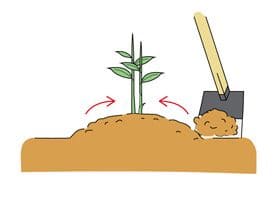 土ができたら畝を立てます。幅60~80cm、高さ10cm程の大きさが目安です。ビニールマルチ(黒)をかける場合はここでかけます。